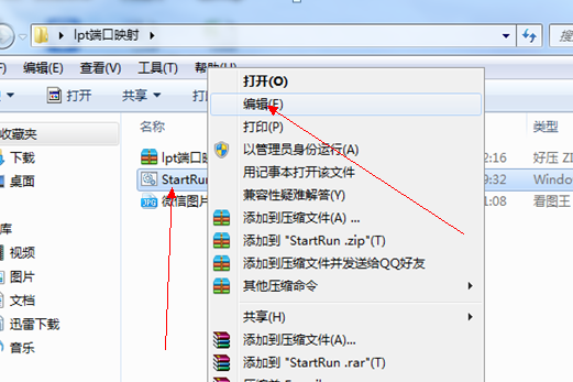 右键映射文件→编辑→修改为【lpt1=com1】(虚拟的其中一个端口)保存→复制【mode lpt1=com1】